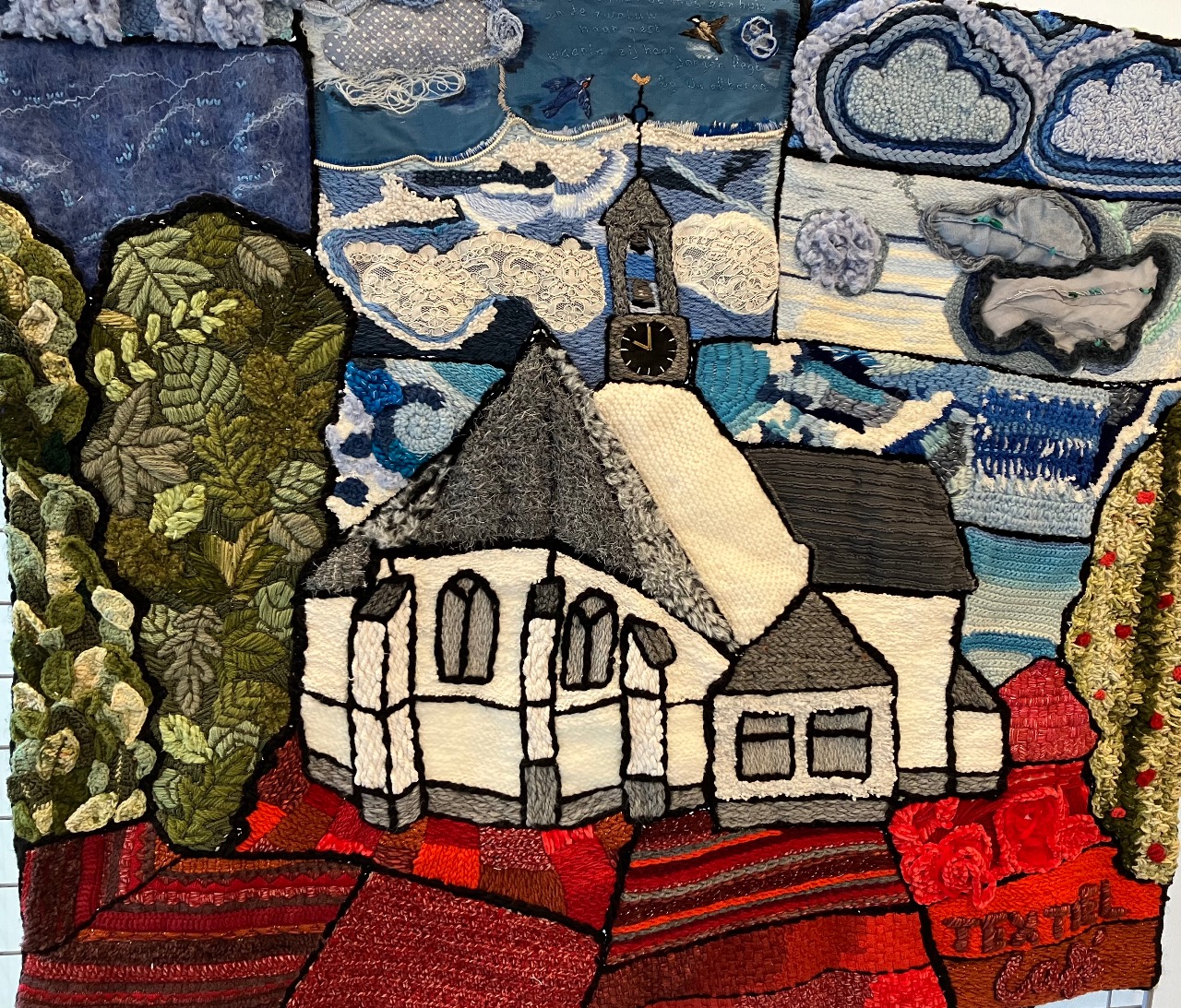 Wat het Textiel Café bindt, is Veenendaal. Daarom vinden de deelnemers het ook zo leuk om aan een project te werken waarin Veenendaal centraal staat. Hun eerste wandkleed, van de Bernard van Kreelpoort, is in januari 2025 afgerond. Inmiddels zijn er nog veel meer kleurrijke werken van Veense plekken opgeleverd, zoals de Oude Kerk op de Mark, De Cultuurfabriek, Brouwersgracht, de Zandstraat in vroegere tijden en Downtown.